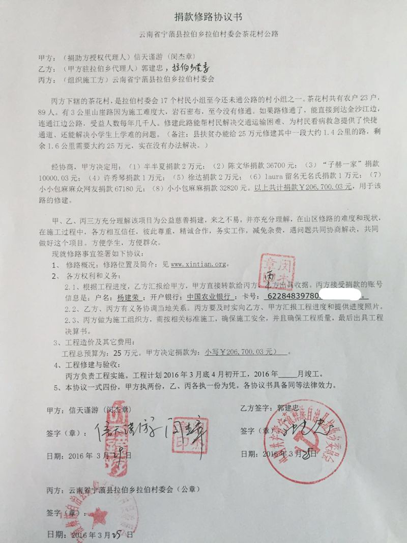 (5)2016.02.29,徐达捐款2万元拼单修路。