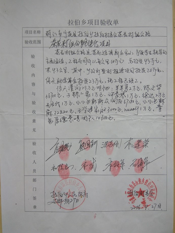 以上茶花村公路总合计捐款23万元(3分钱舍去),不足部分当地自行解决,不再追补捐款。
