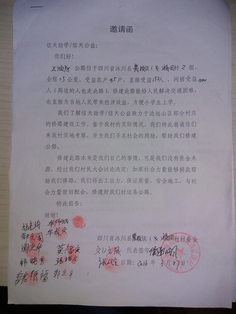 5、请用一颗平常心修路。我们欢迎捐助者去参观修好的路,但请勿大队人马去很多人,做公益是好事但请勿扰民。