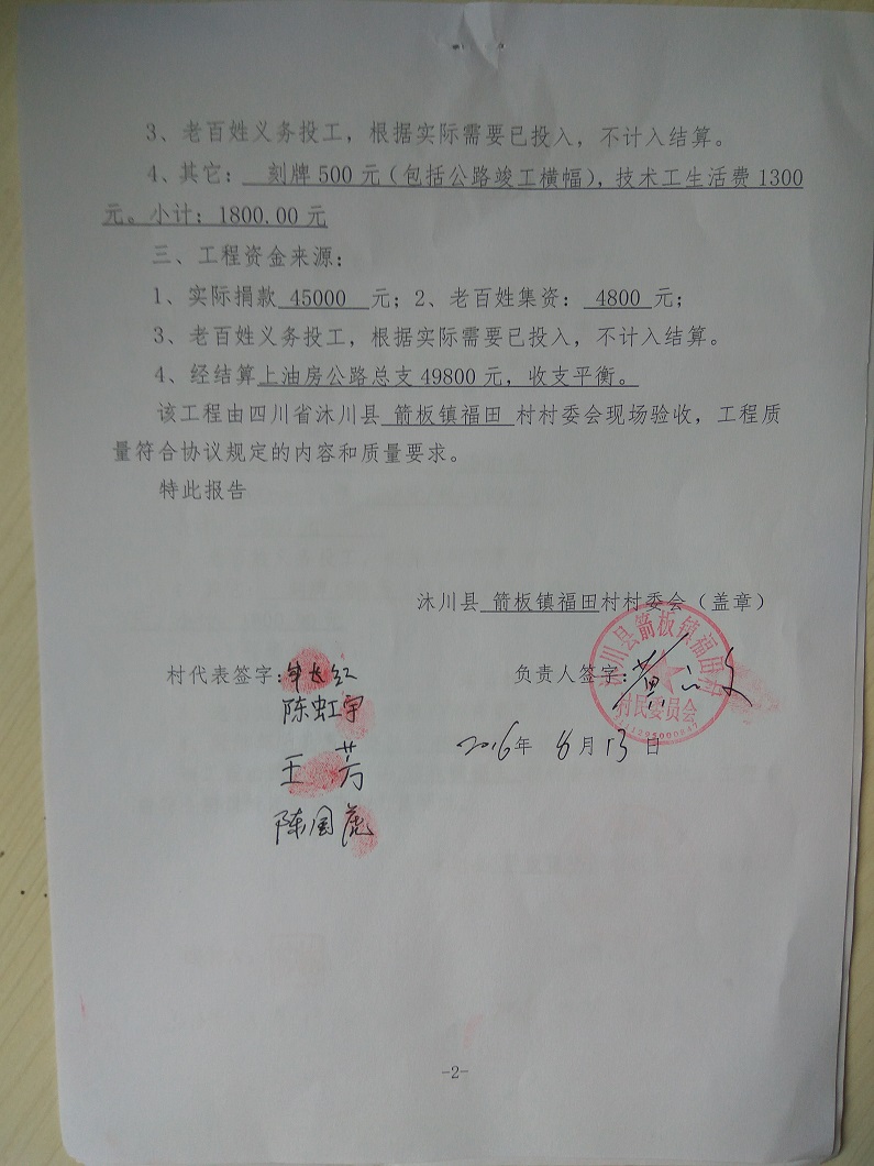 合计总价:48000元,老百姓集资3000元,尚有资金缺口45000元。