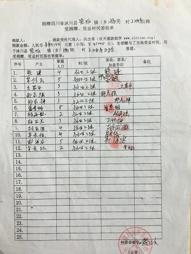 (1)爱心人捐款、村民投工投劳一起修土路;