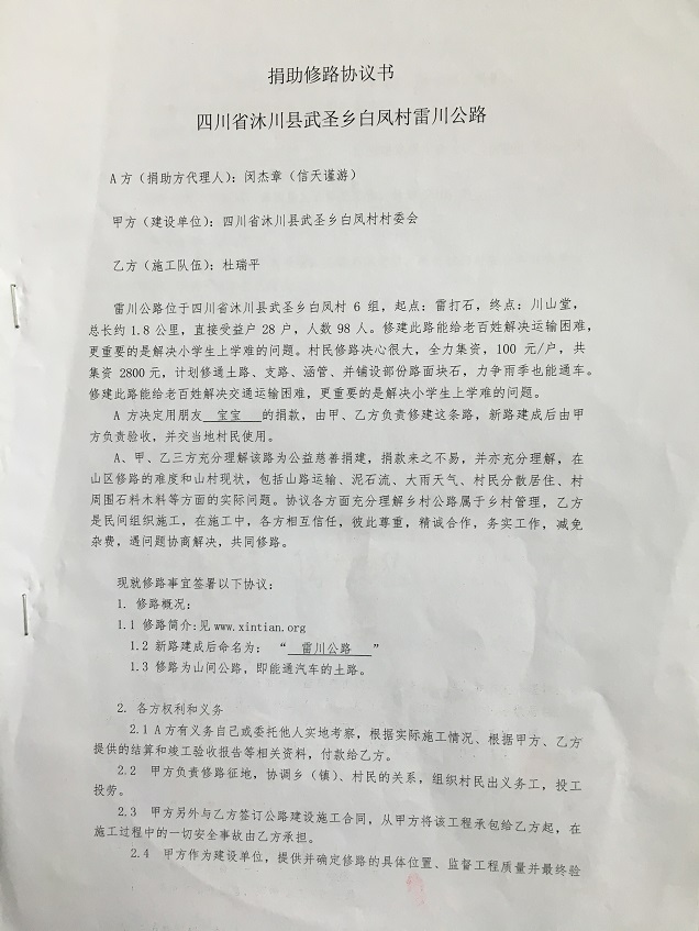 备注:(信天谨游受朋友李佳润委托修路,留名宝宝)