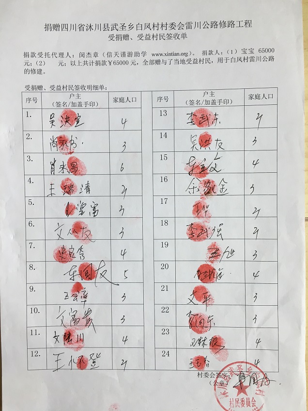 拟捐款:65000 元,不足部分由村委会解决。