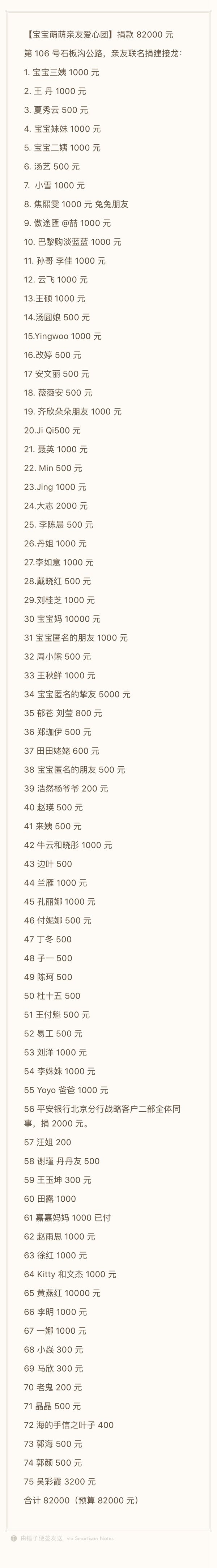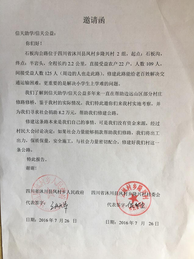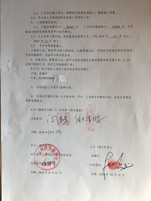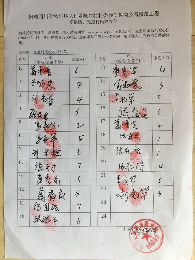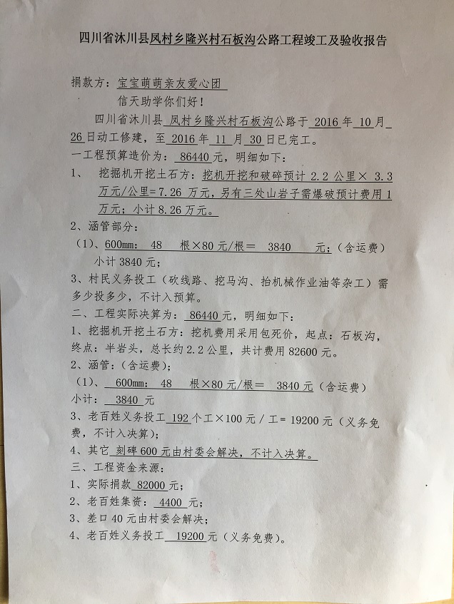 备注:(信天谨游受朋友李佳润、赵萌委托修路,留名宝宝萌萌亲友爱心团)