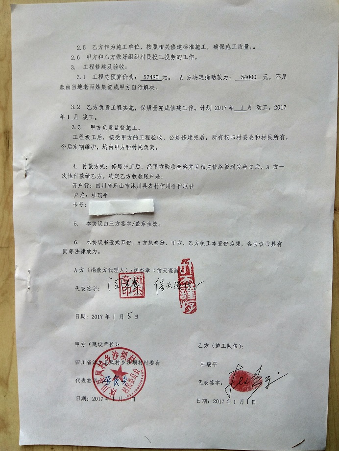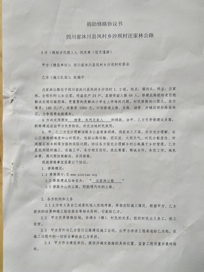 捐助修路协议书