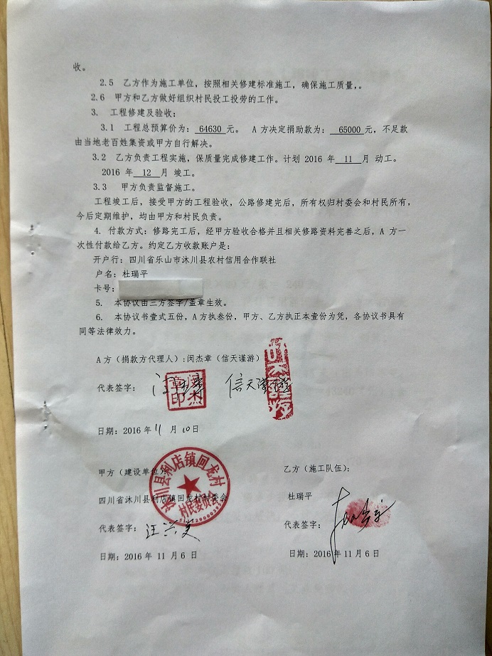 捐助修路协议书