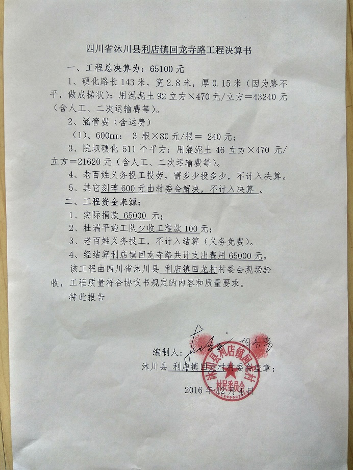 标题: 第109条:四川省沐川县利店镇回龙寺人行道和院坝硬化-觉醒就是爱