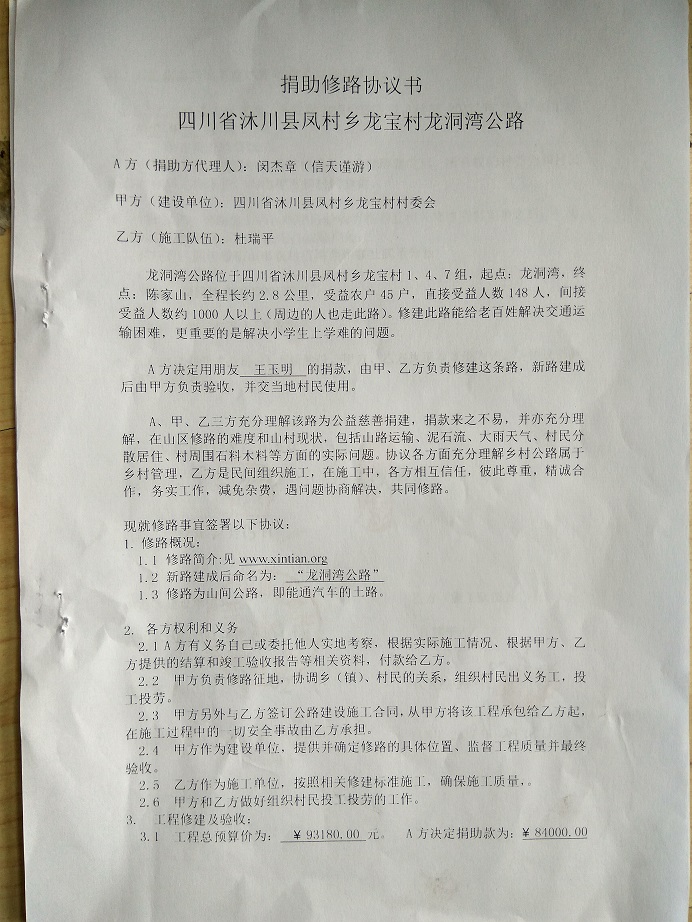 (1)爱心人捐款、村民投工投劳一起修土路;