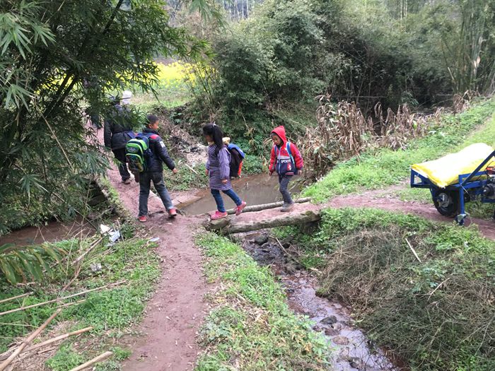 没有路,小学生上学困难。