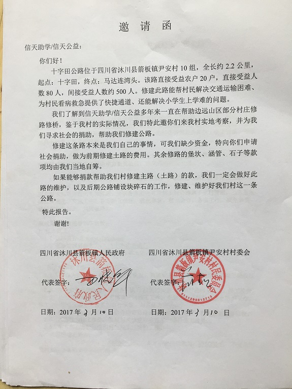 (1)爱心人捐款、村民投工投劳一起修土路;