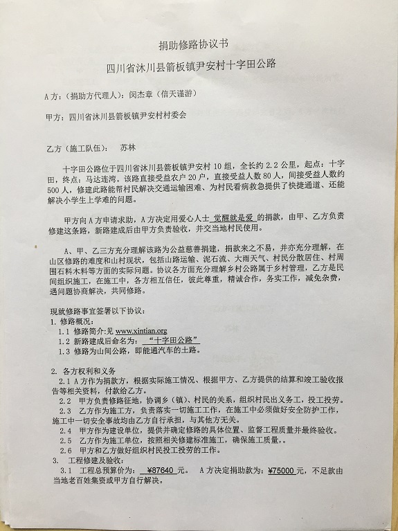 捐助修路协议书