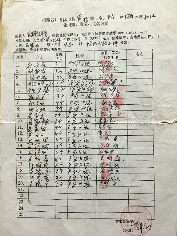 受益村名签字单