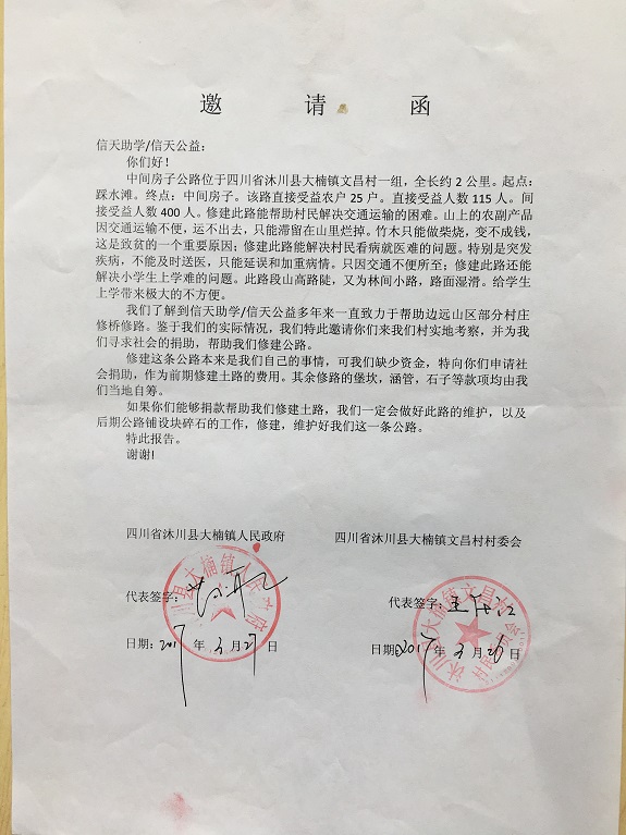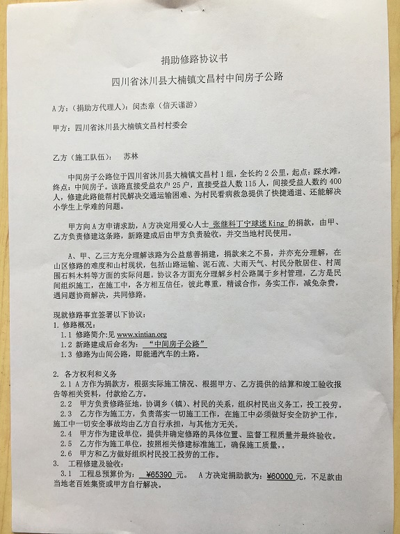 (1)爱心人捐款、村民投工投劳一起修土路;