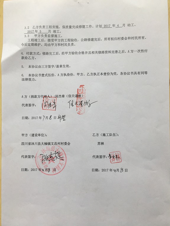 (4) 有的地方村民太困难,在大山更深处,这样,我们就尽量不让村民再集资了,只投工投劳就可以了。而,有的地方小水泥路就通到了山脚下,我们修路来接通外界的小水泥路,这样,材料可以直接运输到山脚下,村民除了投工投劳,就再集资一些钱,我们共同修建山村公路。