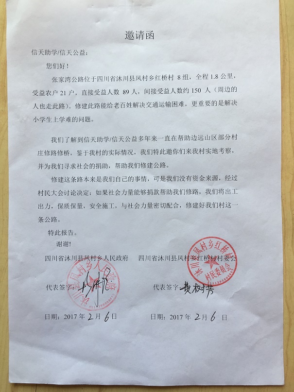 (1)爱心人捐款、村民投工投劳一起修土路;