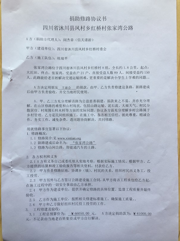捐助修路协议书