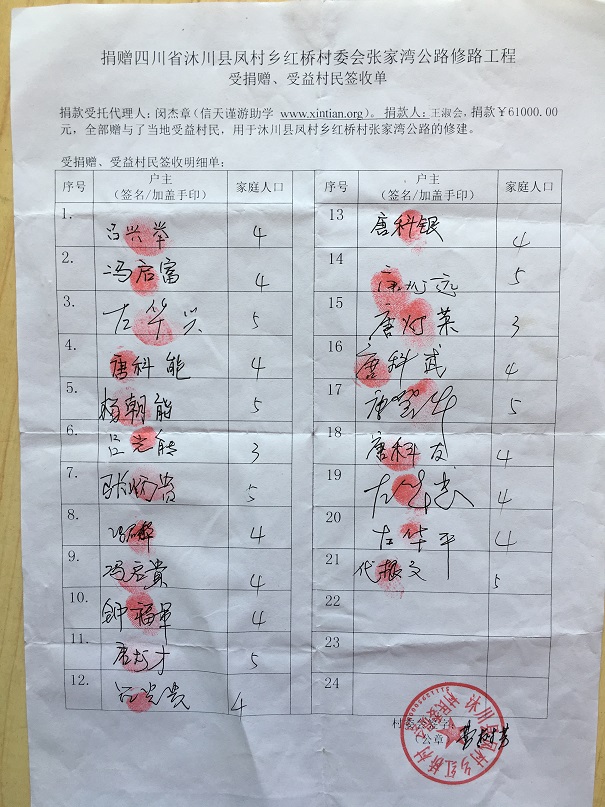 受益村民签字单