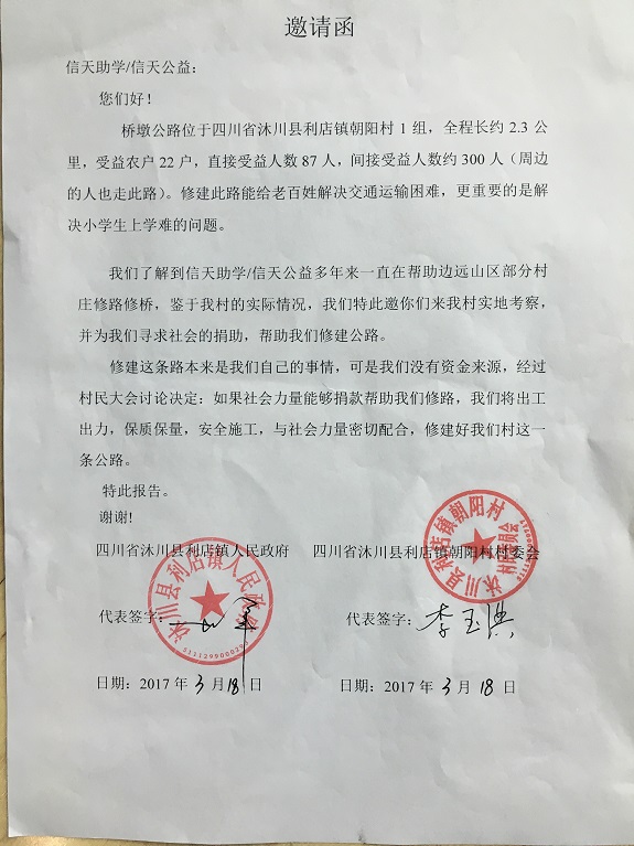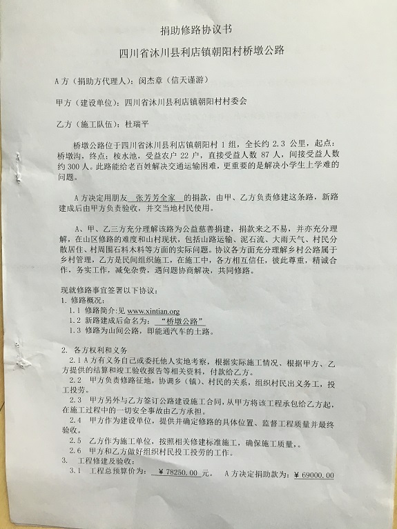 (1)爱心人捐款、村民投工投劳一起修土路;