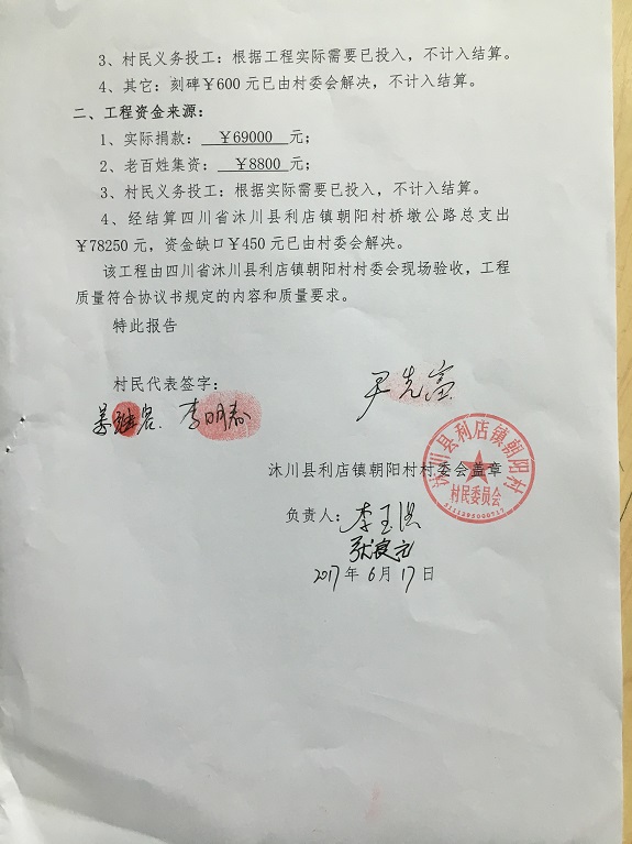 (4) 有的地方村民太困难,在大山更深处,这样,我们就尽量不让村民再集资了,只投工投劳就可以了。而,有的地方小水泥路就通到了山脚下,我们修路来接通外界的小水泥路,这样,材料可以直接运输到山脚下,村民除了投工投劳,就再集资一些钱,我们共同修建山村公路。