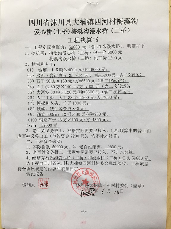 » 48座桥:四川省沐川县大楠镇四河村1组梅溪沟爱心桥(范川捐)