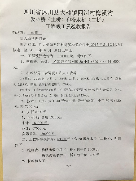 标题: 48座桥:四川省沐川县大楠镇四河村1组梅溪沟爱心桥(范川捐)