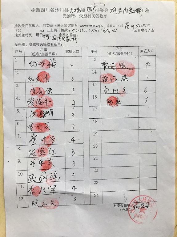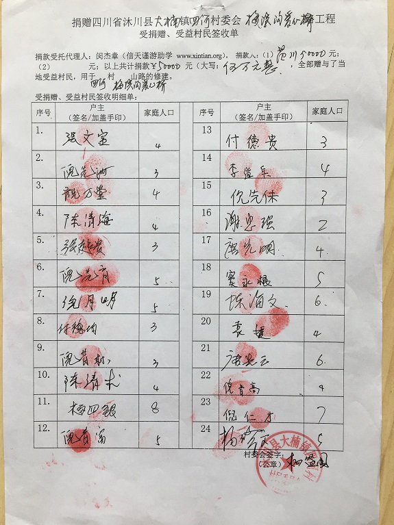 受益村民签字单