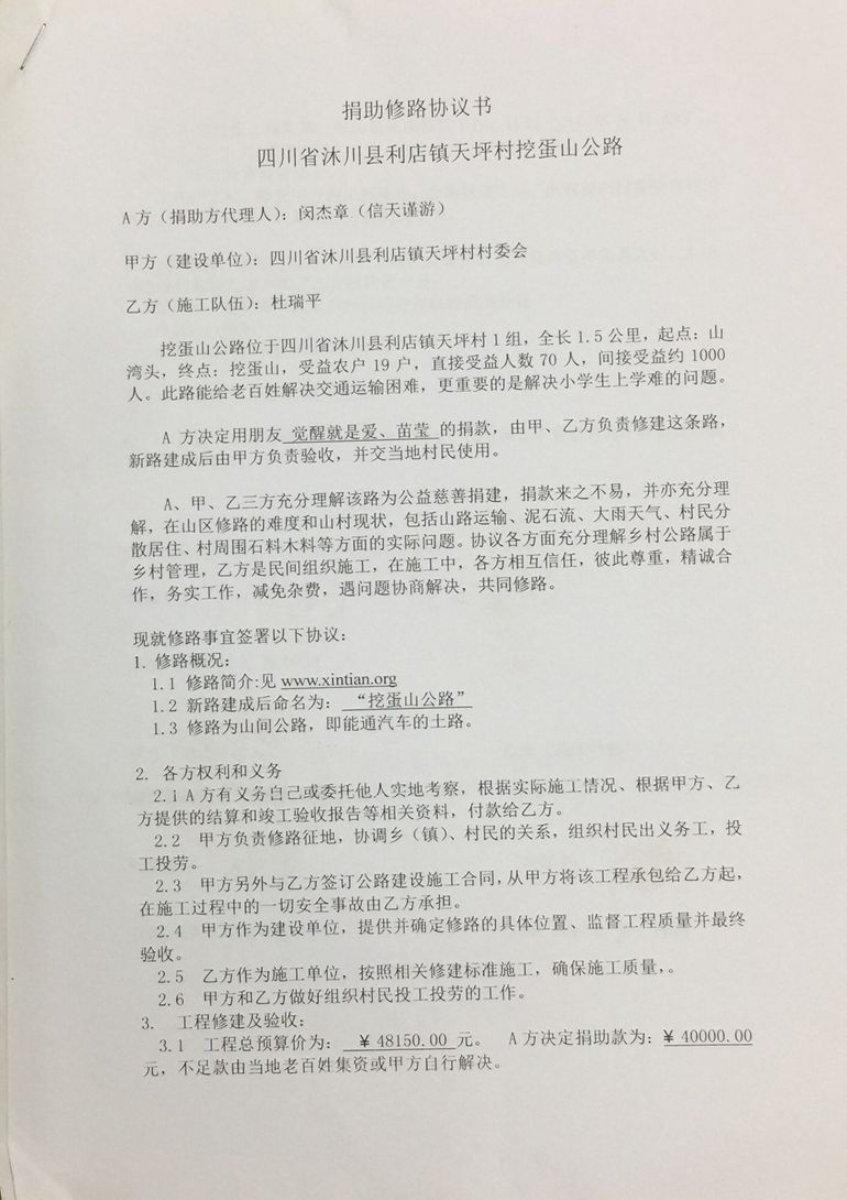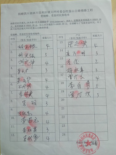 (1)爱心人捐款、村民投工投劳一起修土路;