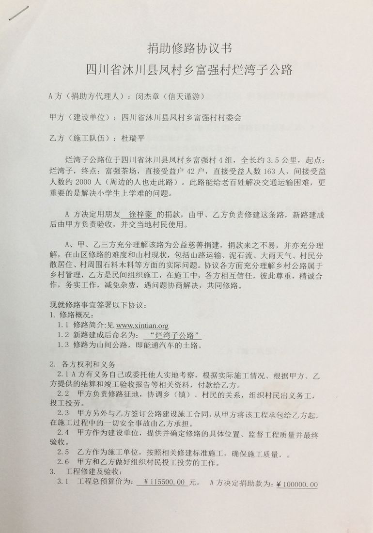 (1)爱心人捐款、村民投工投劳一起修土路;