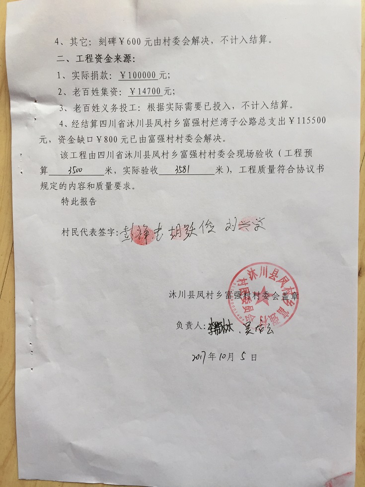 拟捐款:10万元,不足部分由村委会解决。