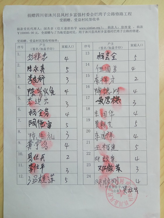 受益群众签字单