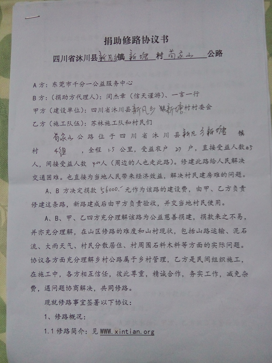 (1)爱心人捐款、村民投工投劳一起修土路;