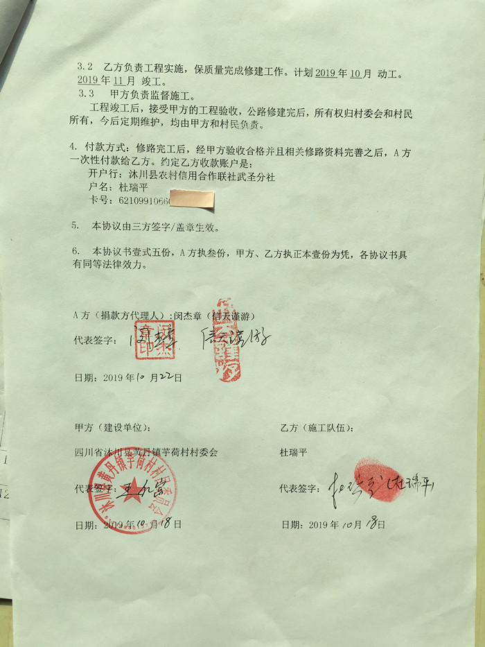 捐助修路协议书
