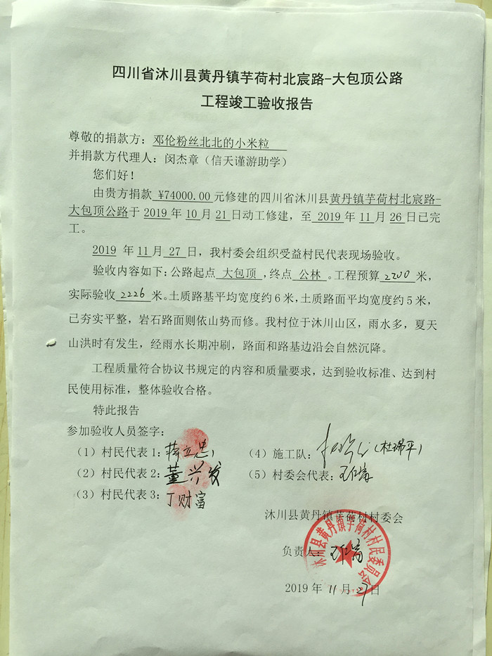 (1)爱心人捐款、村民投工投劳一起修土路,干季可以通车;