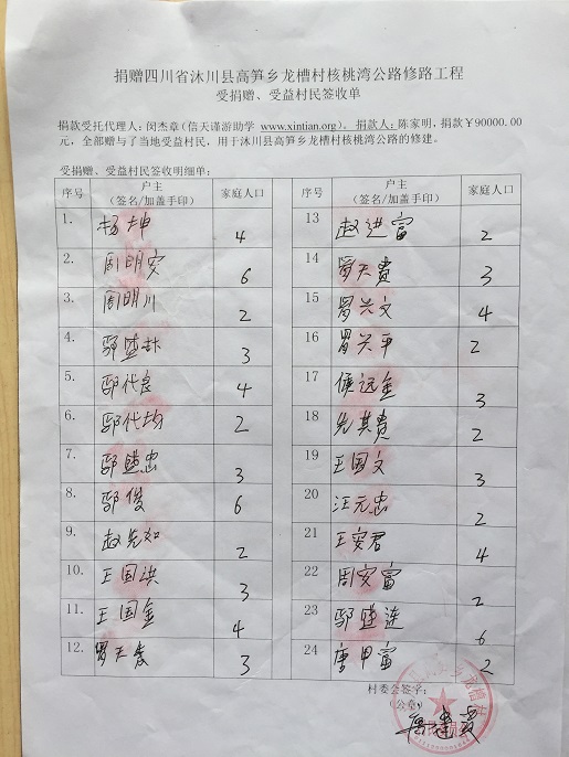 这样,村民自助、社会捐助、政府帮助三方力量都结合起来,循序渐进,相信明天更美好。