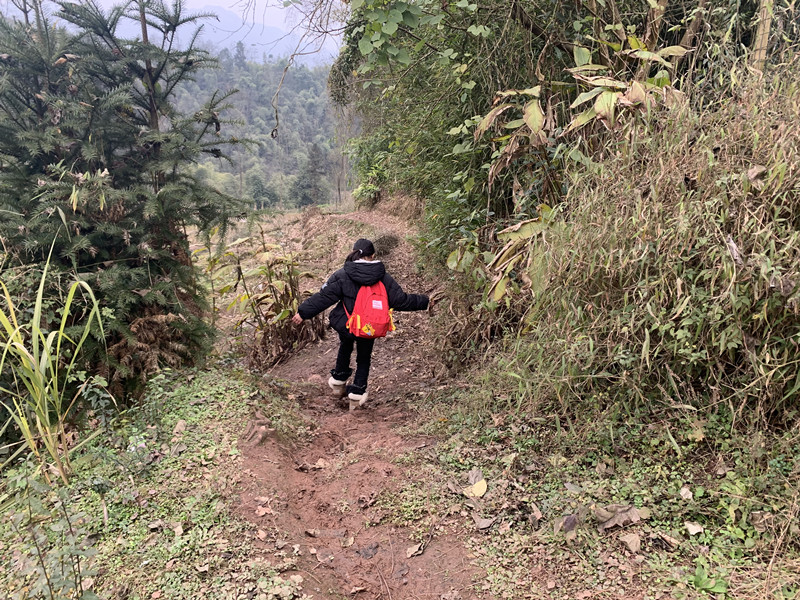 小学生上学之路,等修好了路之后,就可以坐三轮车、面包车上学了,或者骑自行车上学了。