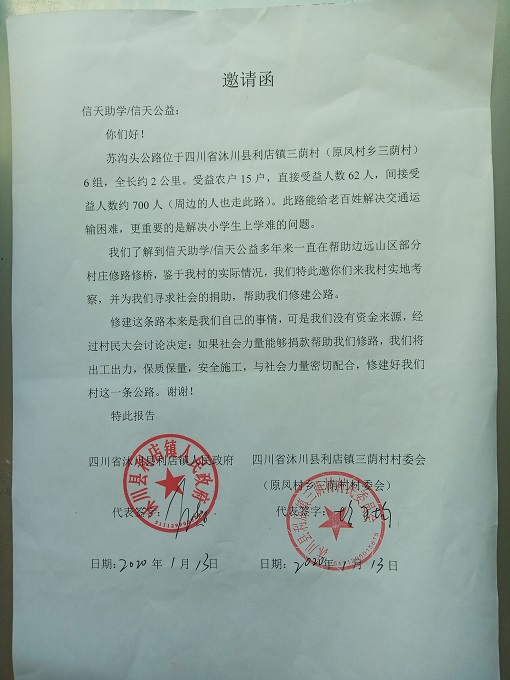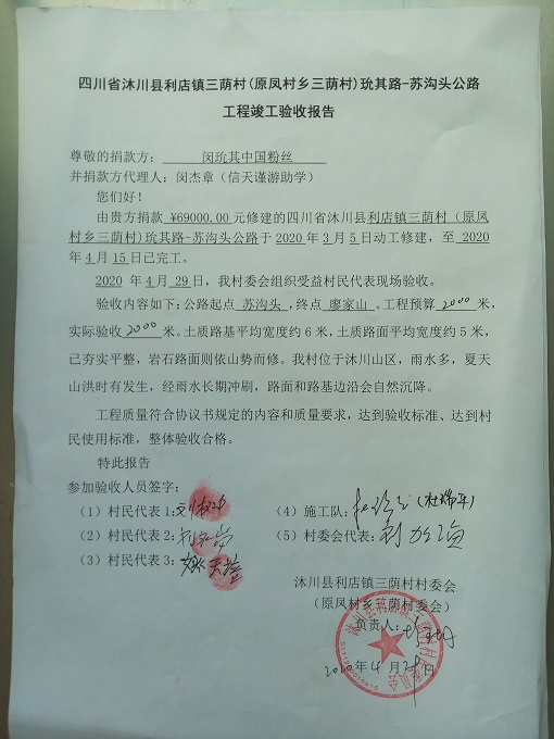 (1)爱心人捐款、村民投工投劳一起修土路,干季可以通车;