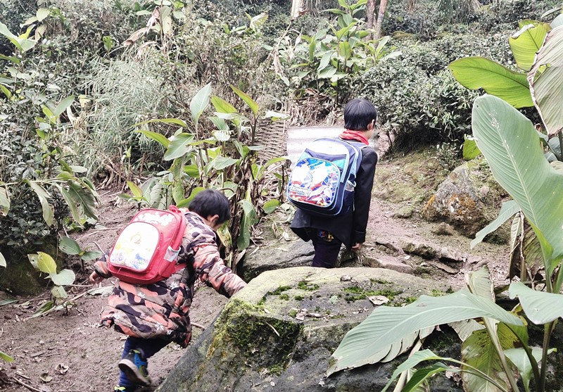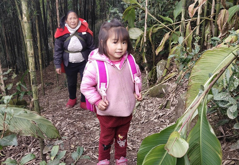 小学生上学之路,等修好了路之后,就可以坐三轮车、面包车上学了,或者骑自行车上学了。