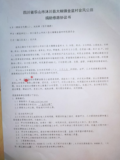 捐助修路协议书