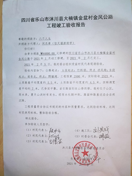 第277条:四川省沐川县大楠镇金盆村4/5/9组金风公路-六不人生
