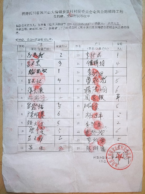 受益村民签字单