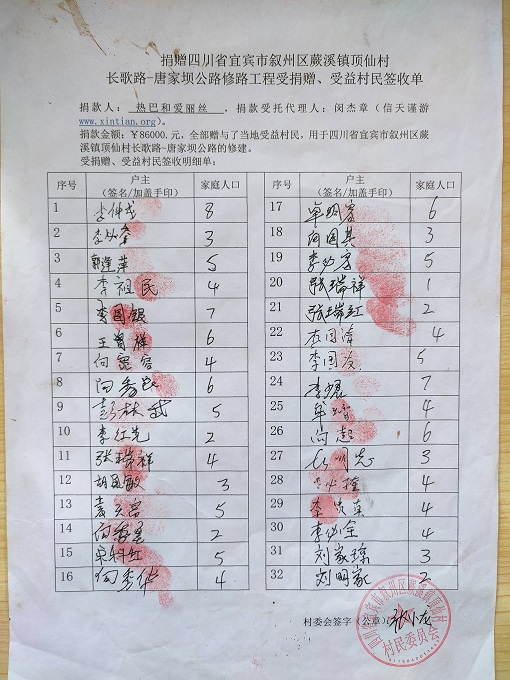 受益村民签字单