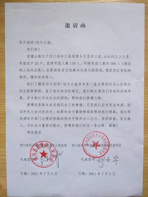 (1)爱心人捐款、村民投工投劳一起修土路,干季能通车;