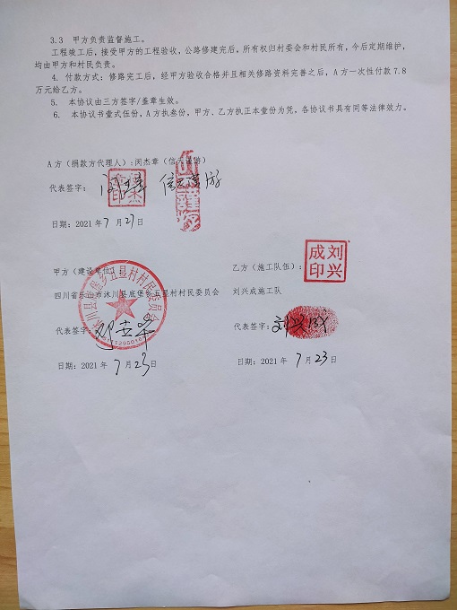 (4) 有的地方村民太困难,在大山更深处,这样,村民不用再集资了,只投工投劳就可以了。而,有的地方小水泥路就通到了山脚下,我们修路来接通外界的小水泥路,这样,材料可以直接运输到山脚下,村民除了投工投劳,就集资一些钱,我们共同修建山村公路。