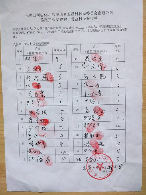 这样,村民自助、社会捐助、政府帮助三方力量都结合起来,循序渐进,相信明天更美好。