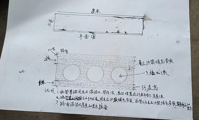 选择300mm.400mm.600mm的涵管,数量和口径根据现场路况合理安放,预计6600元。