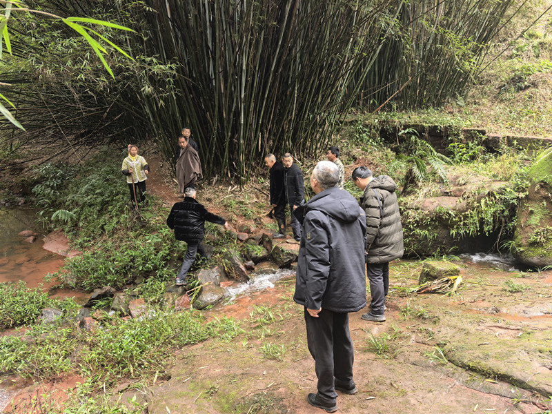 村民勘察路线,计划把这里的羊肠小道扩宽修建成能跑四轮车的乡间土质公路。