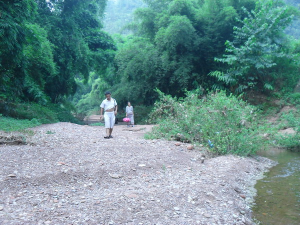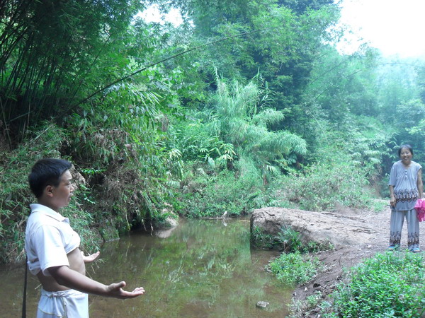 新开村五组位于新开村三组下游大山嘴村处,两村相距四公里,新开五组居住着30多户人家,共100多人,大山嘴桥属于人行便桥,修建这座桥主要方便洪水季节学生和行人过河难的问题。