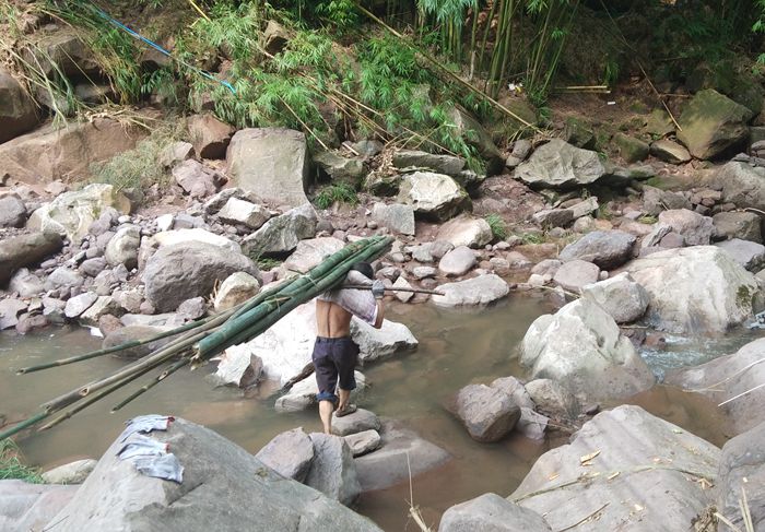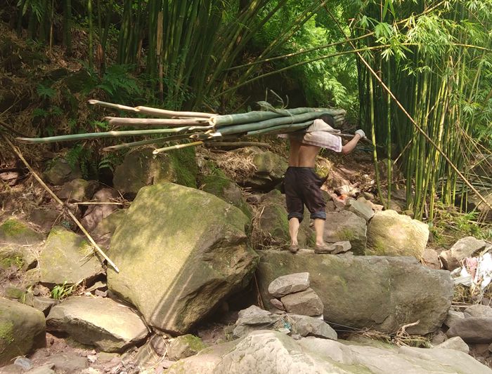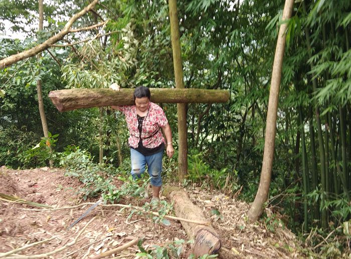 不通公路,村民劳动靠肩扛背驮。
