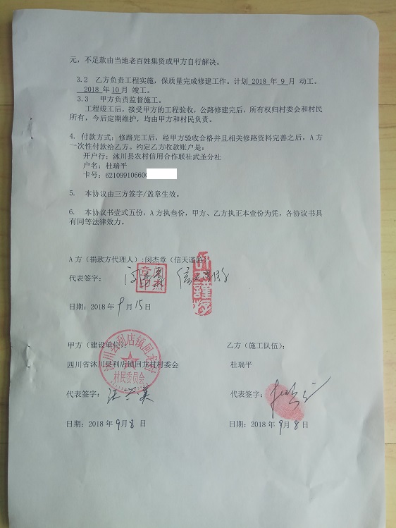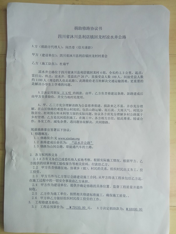 捐助修路协议书