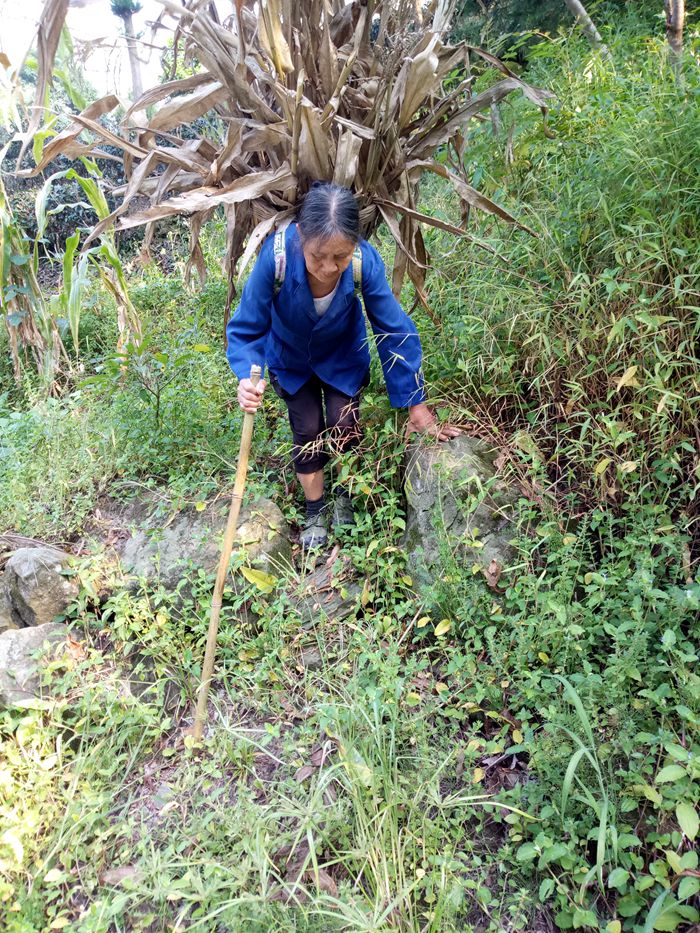 不通公路,村民劳动靠肩扛背驮。